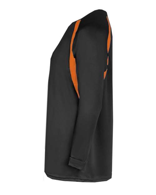 3.5 oz./yd², 100% polyester moisture-management/antimicrobial performance fabric Contrast side and sleeve panel inserts Self-fabric collar Double-needle hem Badger heat-seal logo on left sleeve This product meets the following Sustainable Style subcategory: Socially Conscious Manufacturing: This product was made in a facility that has partnered with or is accredited by the Fair Labor Association.