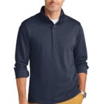 Structured double-knit style with a luxuriously soft hand, this pullover skips the traditional zipper in favor of a relaxed, elevated look. 8-ounce, 76/22/2 polyester/rayon/spandex double-knit Cadet collar Faux horn buttons with Brooks Brothers logo Rounded buttoned cuffs