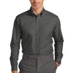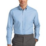 Balancing a professional look with business-casual style, our nailhead dress shirt features a subtle two-color pattern and a soft hand. A premium wrinkle-free treatment process keeps it looking sharp and stylish all day. 4-ounce, 95/5 cotton/spandex fine yarn count Button-down collar Left chest pocket Taped seams Dyed-to-match buttons with Brooks Brothers logo Rounded, adjustable cuffs Rental-friendly