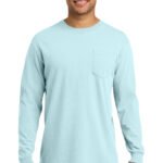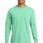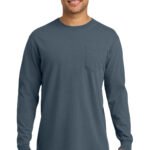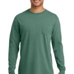 6.1-ounce, 100% ring spun cotton Soft-washed, garment-dyed fabric Double-needle collar Twill-taped neck and shoulders Twill label Single-needle left chest pocket with double-needle hem Rib knit cuffs Double-needle bottom hem