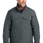 Built with workers in mind, this insulated soft shell helps keep wind and rain out, while providing plenty of pockets for tool and gear storage. 100% polyester shell with water-resistant finish bonded to water-resistant film insert and a 100% polyester brushed microfleece lining 5.9-ounce, 100% polyfill insulation diamond quilted body 3.5-ounce, 100% polyfill insulation diamond quilted sleeves Fabric waterproof rating: 1000MM Fabric breathability rating: 1000G/M2 Triple-needle stitching Rivet and snap details throughout Chest pockets with snaps, flaps and hook and loop closures Reinforced lower front pockets with concealed interior phone pocket Exposed center front zippered closure with longer pull Self-fabric adjustable tab cuffs with hook and loop closures Adjustable drawcord hem Decoration access pocket