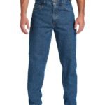 Denim endures. From your first pair of blue jeans as a kid, you’ve always loved the feel and comfort of denim. Built to endure harsh jobs. 15-ounce, 100% cotton denim Sits above the waist Comfortable fit through the seat and thigh with more room to move Stronger sewn-on-seam belt loops Tapered leg opening fits over boots Carhartt leatherette label sewn on right rear pocket Relaxed fit