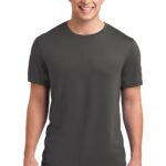 | 5.4-ounce, 50/50 cotton/poly jersey 47/53 cotton/poly (Oxford) Moisture-wicking Tear-away label Double-needle coverstitching on front neck Seamless 1×1 rib knit collar Shoulder-to-shoulder taping Rib knit cuffs Double-needle hem Ash (formerly Birch)