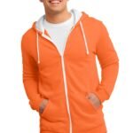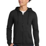 Rock out in warmth and layerability.| 7.9-ounce (270 GSM) 50/50 cotton/polyester fleece Tear-away label Black jersey hood lining , twill back neck tape, flat drawcords, YKK zipper and zipper tape 2×2 rib knit cuffs and hem