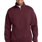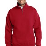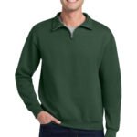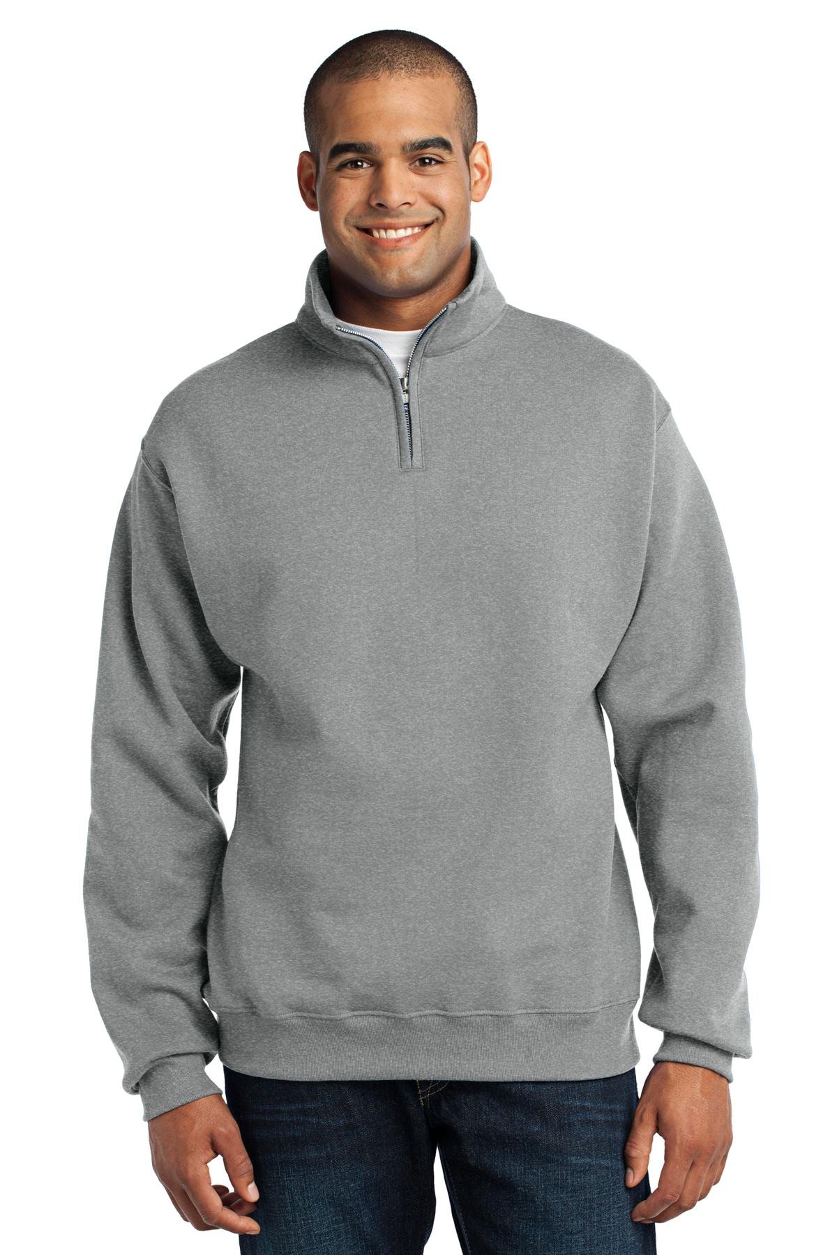 | 8-ounce, 50/50 cotton/poly NuBlend ® ; pill-resistant fleece High-stitch density for a smooth-printing canvas Stylish zip-through cadet collar Covered aluminum zipper for maximum print area Rib knit cuffs and waistband Double-needle coverstitching on armholes and waistband