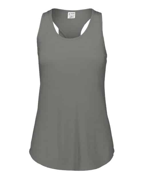 3.8 oz./yd², 50/38/12 polyester/cotton/rayon triblend knit Relaxed fit Scoop neck Racerback with keyhole Contoured bottom Tear away label