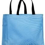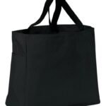 This durable tote comes in a rainbow of colors and is a tremendous value. | 600 denier polyester canvas Large main section with small interior self-fabric pockets Exterior side pocket Web handles Dimensions: 12’h x 12’w x 6.5’d, Approx. 936 cubic inches Note: Bags not intended for use by children 12 and under. Includes a California Prop 65 and social responsibility hangtag.