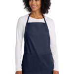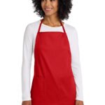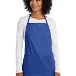 Enjoy full-length protection and the convenience of an easy care blend. | 5.5-ounce,65/35 poly/cotton for easy care Unique fitting system allows for adjusting length by pulling a single strap Two patch pockets, pen pocket Measures 22’w x 30’l