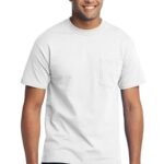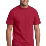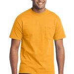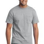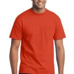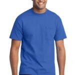 A reliable choice for comfort, softness and durability. | 5.5-ounce, 50/50 cotton/poly Made with up to 5% recycled polyester from plastic bottles (Except Ash and Athletic Heather) Left chest pocket Removable tag for comfort and relabeling Due to the nature of 50/50 cotton/polyester neon fabrics, special care must be taken throughout the printing process.
