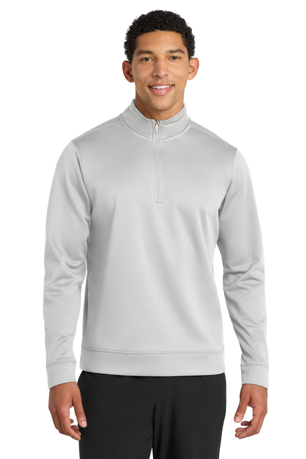 Stay active in performance sweatshirts powered by Dry Zone moisture-wicking technology. 5.9-ounce, 100% polyester Removable tag for comfort and relabeling Taped neck Cadet collar Dyed-to-match YKK zipper Self-fabric cuffs and hem