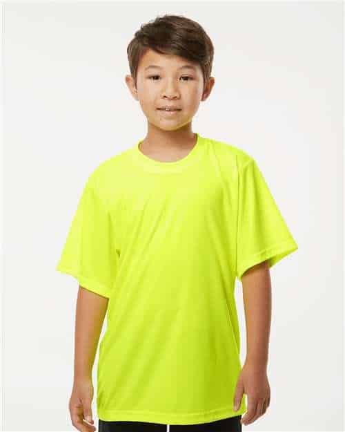 5.4-ounce, 50/50 cotton/poly 47/53 cotton/poly (Oxford) Advanced moisture management performance Tear-away label 1×1 rib collar with clean neckline Double-needle coverstitching on front neck Shoulder-to-shoulder taping Double-needle sleeves and hem Ash (formerly Birch)